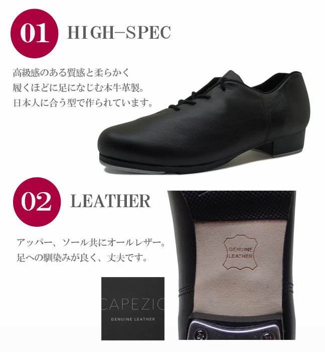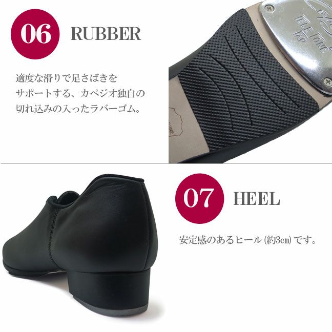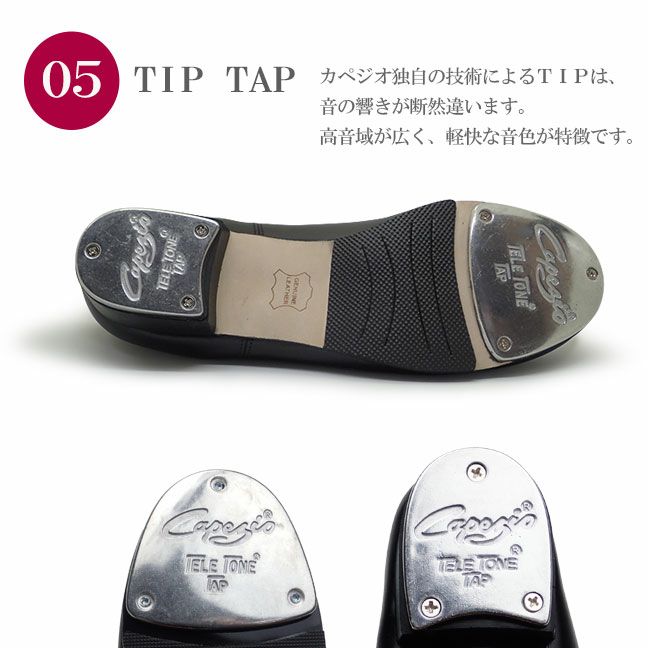 音の響きが断然違う!カペジオ独自の技術【DUOTONETAPS】(つま先)【TELETONE】(踵)を装着。