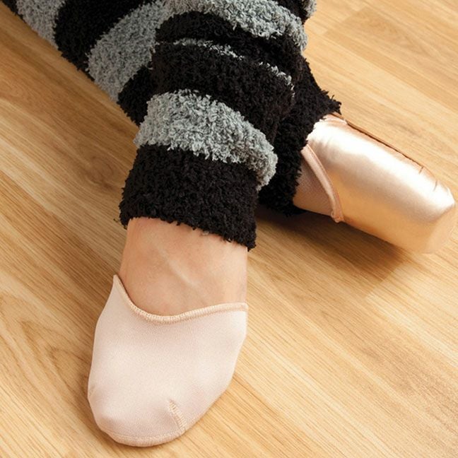 深くカットが入ったヴァンプはトゥシューズのラインにぴったり合い、流線形で足を包み、パッドがずれたり、一ヶ所に片寄るのを防ぎます。