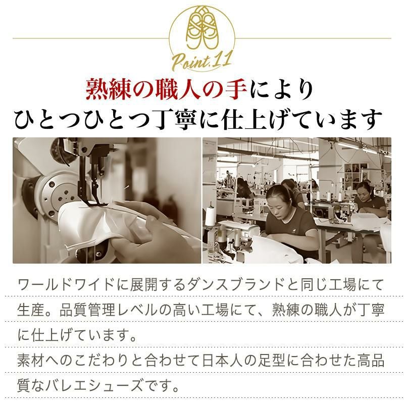 しっかりした素材&縫製。トゥシューズのようなホールド感で見た目も美しいバレエシューズ。