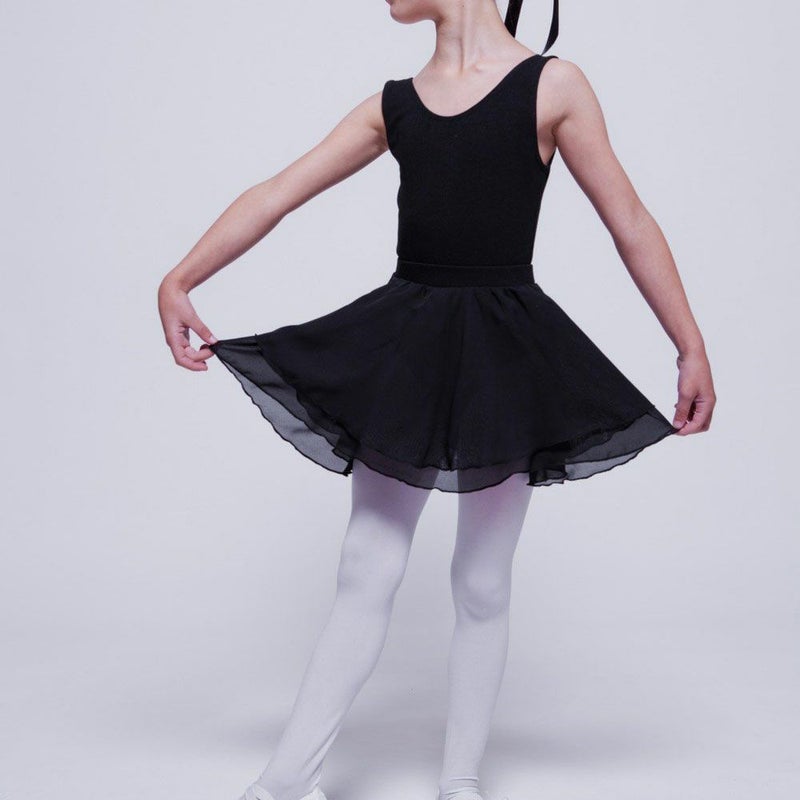 二重のシフォン素材ながら広がらず、少し大人っぽいデザインが人気のバレエスカート。