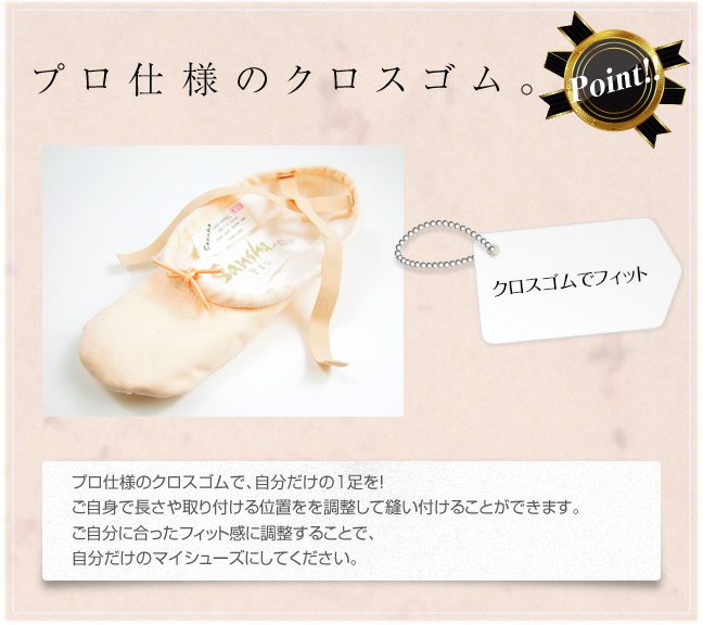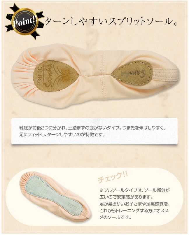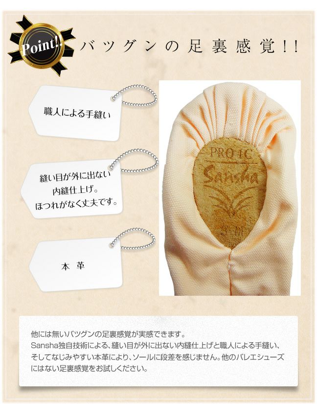 バツグンのストレッチで、爪が伸び・甲が出る。 フィット感に優れ、足を美しく魅せるバレエシューズ。
