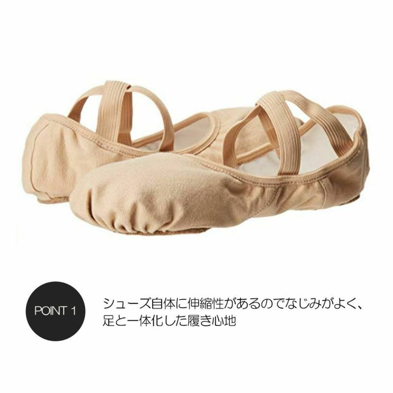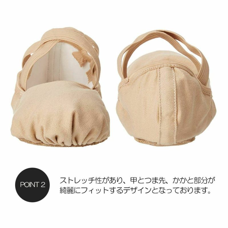 土踏まずの部分が、薄手のストレッチ性のある素材でできたバレエシューズです。まるで素足で踊っているかのような履き心地が特徴です。