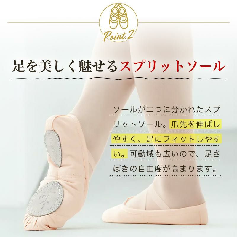 バツグンのストレッチで、爪が伸び・甲が出る。 足を美しく魅せるバレエシューズ。
