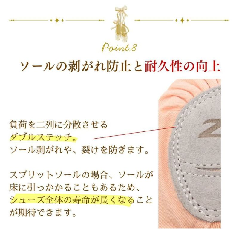しっかりした素材&縫製。トゥシューズのようなホールド感で見た目も美しいバレエシューズ。