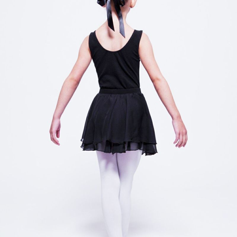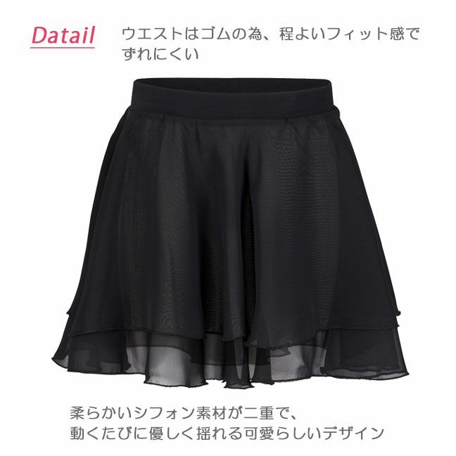 二重のシフォン素材ながら広がらず、少し大人っぽいデザインが人気のバレエスカート。