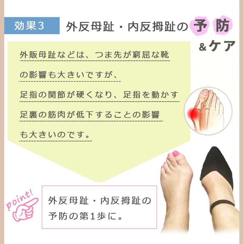 ・疲労回復効果:足指の付け根には疲労に効くツボが集中しており、広げるだけで刺激になり、癒し効果が期待できます。