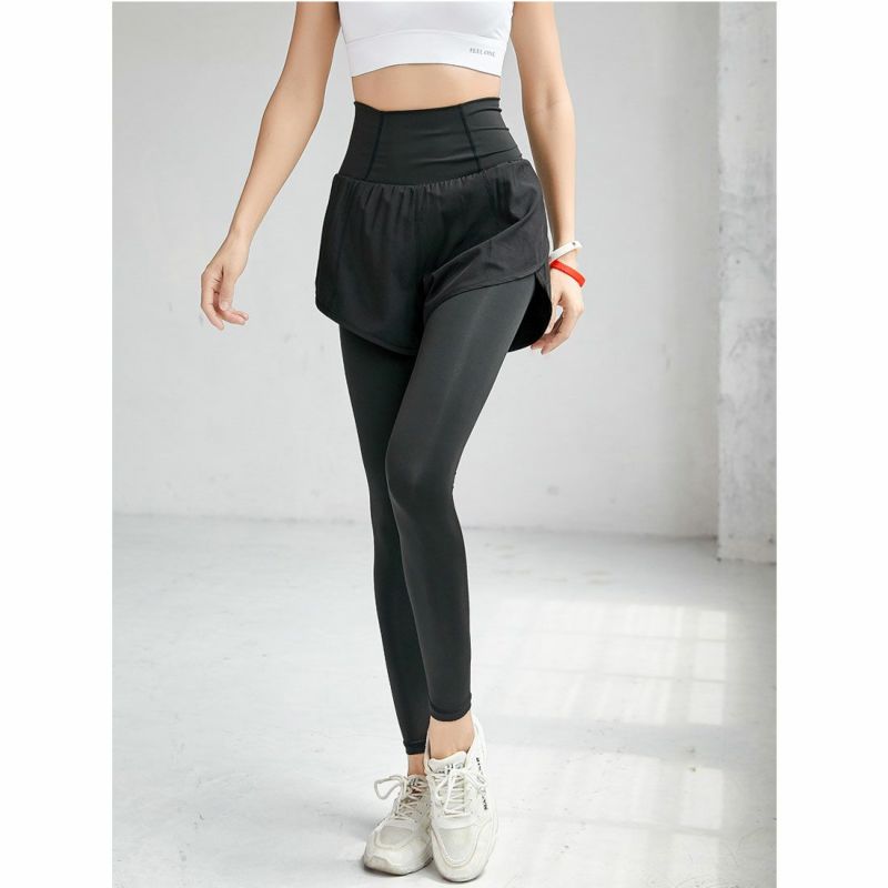 ヨガ ダンス フィットネス ジム 筋トレ トレーニング エクササイズ レギンス レギパン スパッツ ヨガウェア おしゃれ ショートパンツ 一体型 セット レイヤード