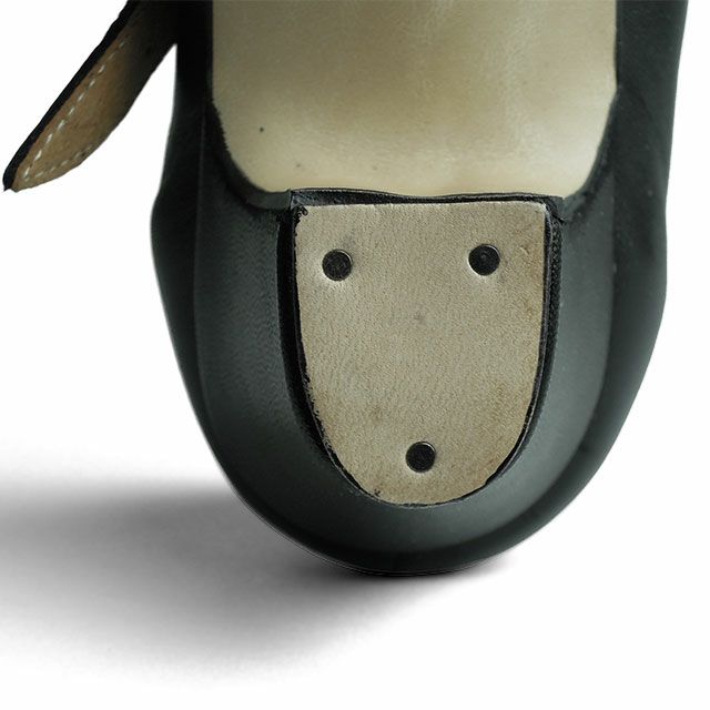 フラメンコシューズ専門の職人ならではの脱げにくいかかとのつくり。