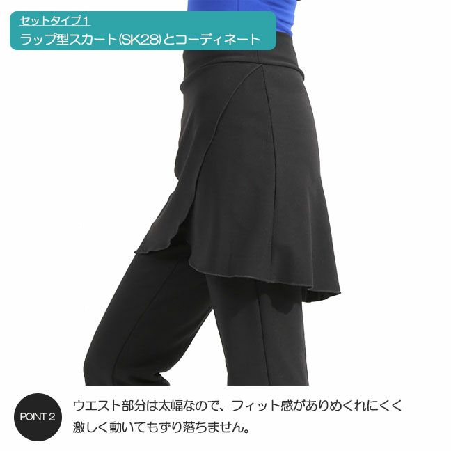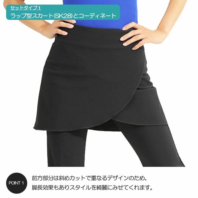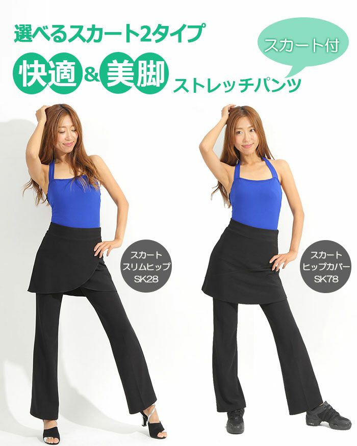 ダンス、ヨガ、ふだん使いなど人気のスカート付ストレッチパンツ。その日の気分でスカート有・無など楽しめます!