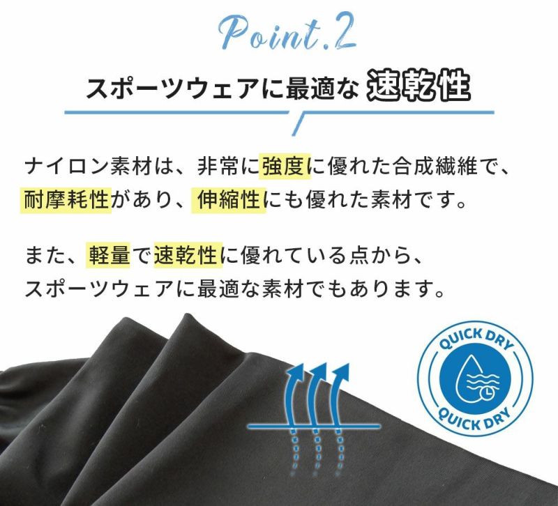 ・ 【接触冷感素材】ひんやり涼しい履き心地のナイロン製。サラッとした肌触りで夏でも心地よい履き心地です。運動後、暑くなっても快適。