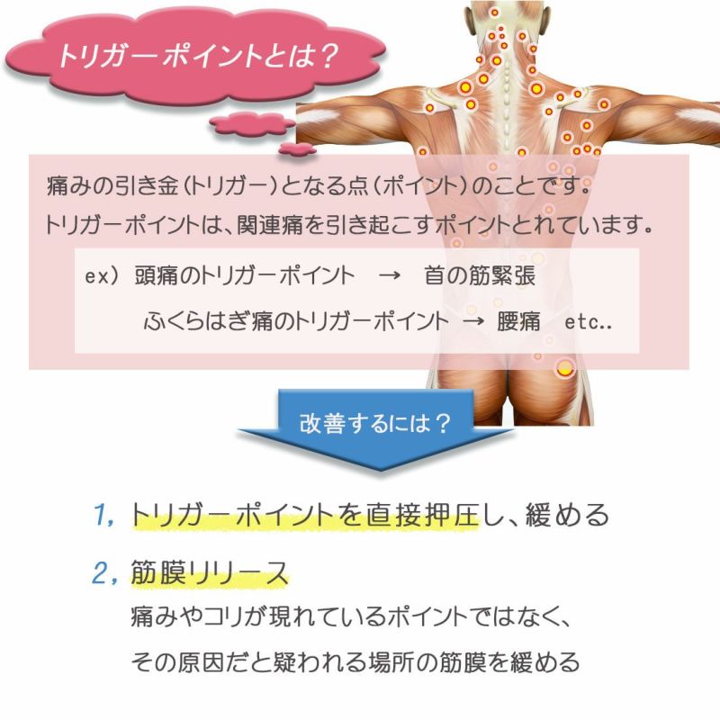 ストレッチ筋膜リリーストリガーポイント腰痛筋肉痛マッサージコリほぐし