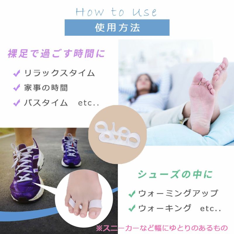 ・疲労回復効果:足指の付け根には疲労に効くツボが集中しており、広げるだけで刺激になり、癒し効果が期待できます。