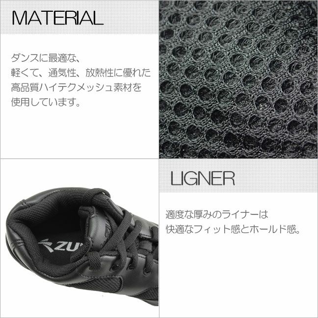ダンスに最適な、軽くて、通気性、放熱性に優れた高品質ハイテクメッシュ素材を使用しています。
