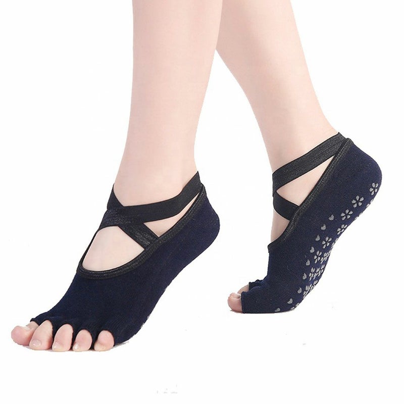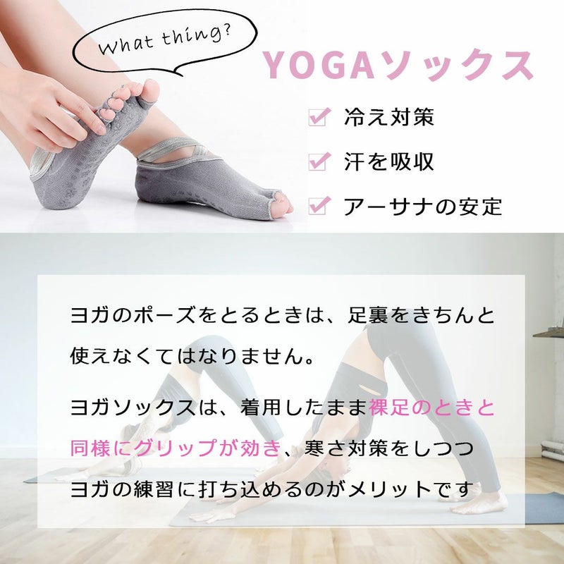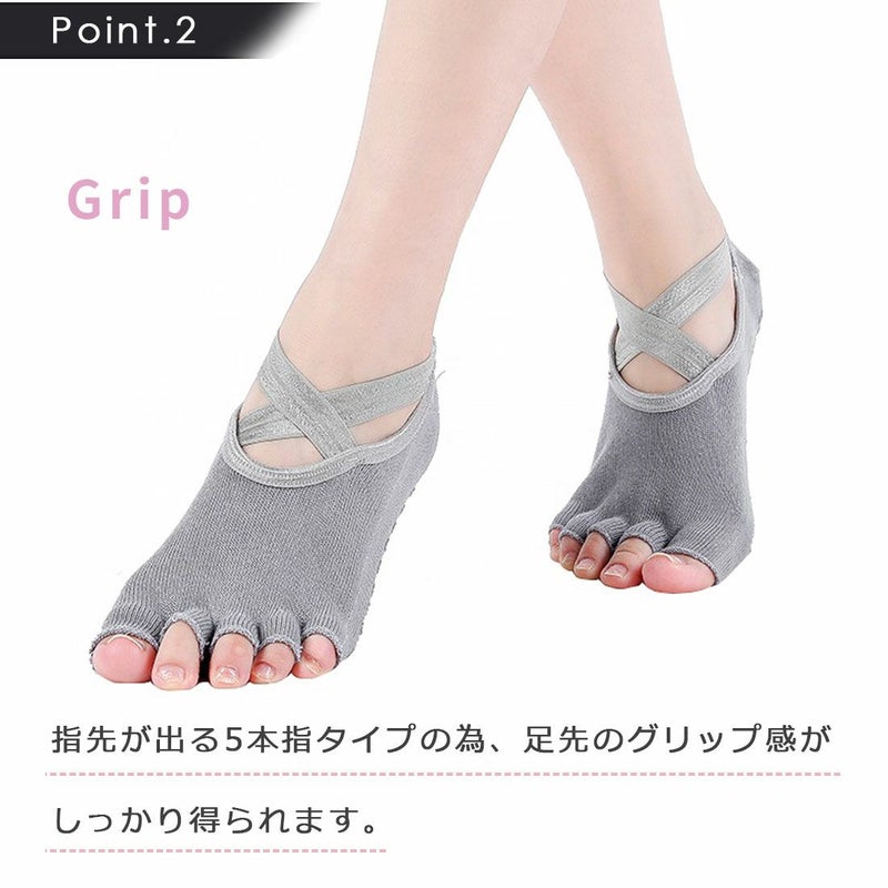 ヨガ ピラティス ホットヨガ スタジオレッスン ジム トレーニング バレエ ダンス ソックス ヨガソックス 多汗症 靴下 5本指 衛生 滑り止め ブラック 黒 グレー シンプル おしゃれ クロス