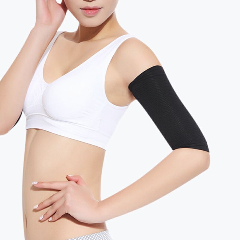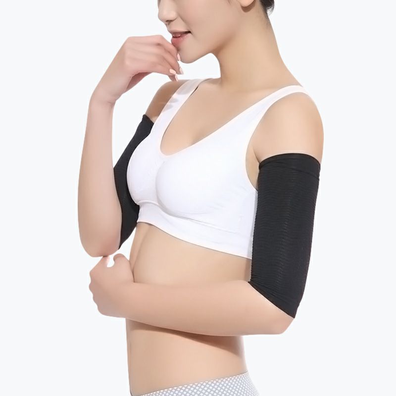 伸縮素材スパンデックスを使用。適度な加圧が二の腕をしっかりホールド。美しいシルエットをつくりだします。。