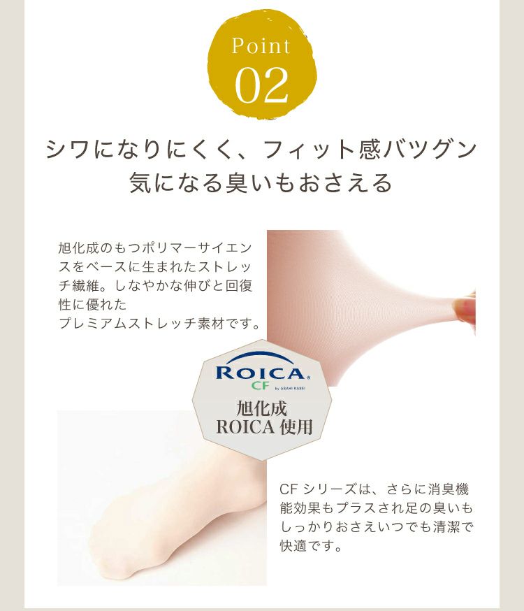 旭化成の持つポリマーサイエンスをベースに生まれたストレッチ素材繊維ロイカを使用してます。CFシリーズなのでさらに消臭機能効果もプラスされいます。