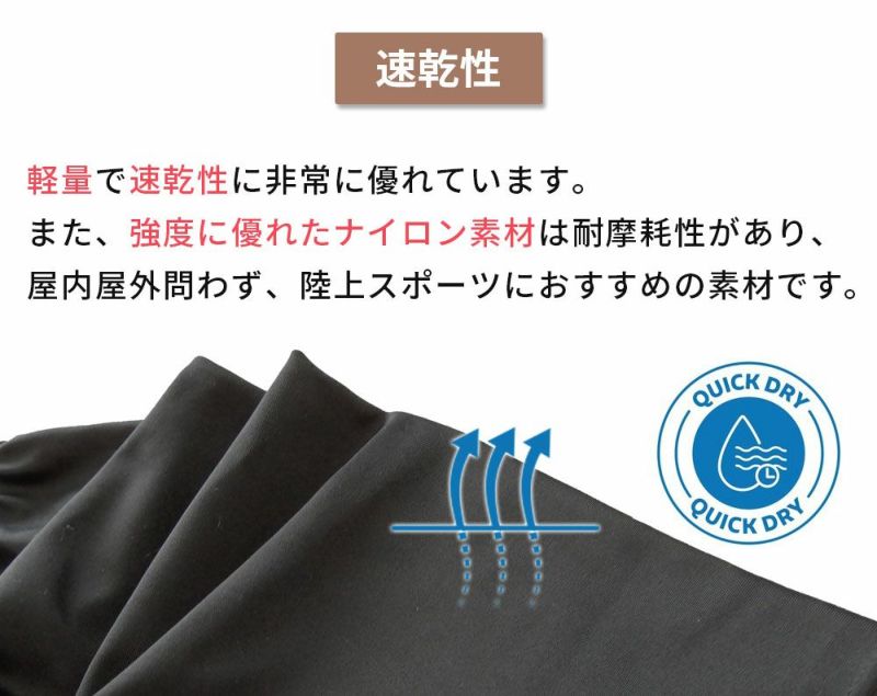 【速乾性】水陸両用生地の為サラッとした肌触りで速乾性に優れ、汗をかいても安心。